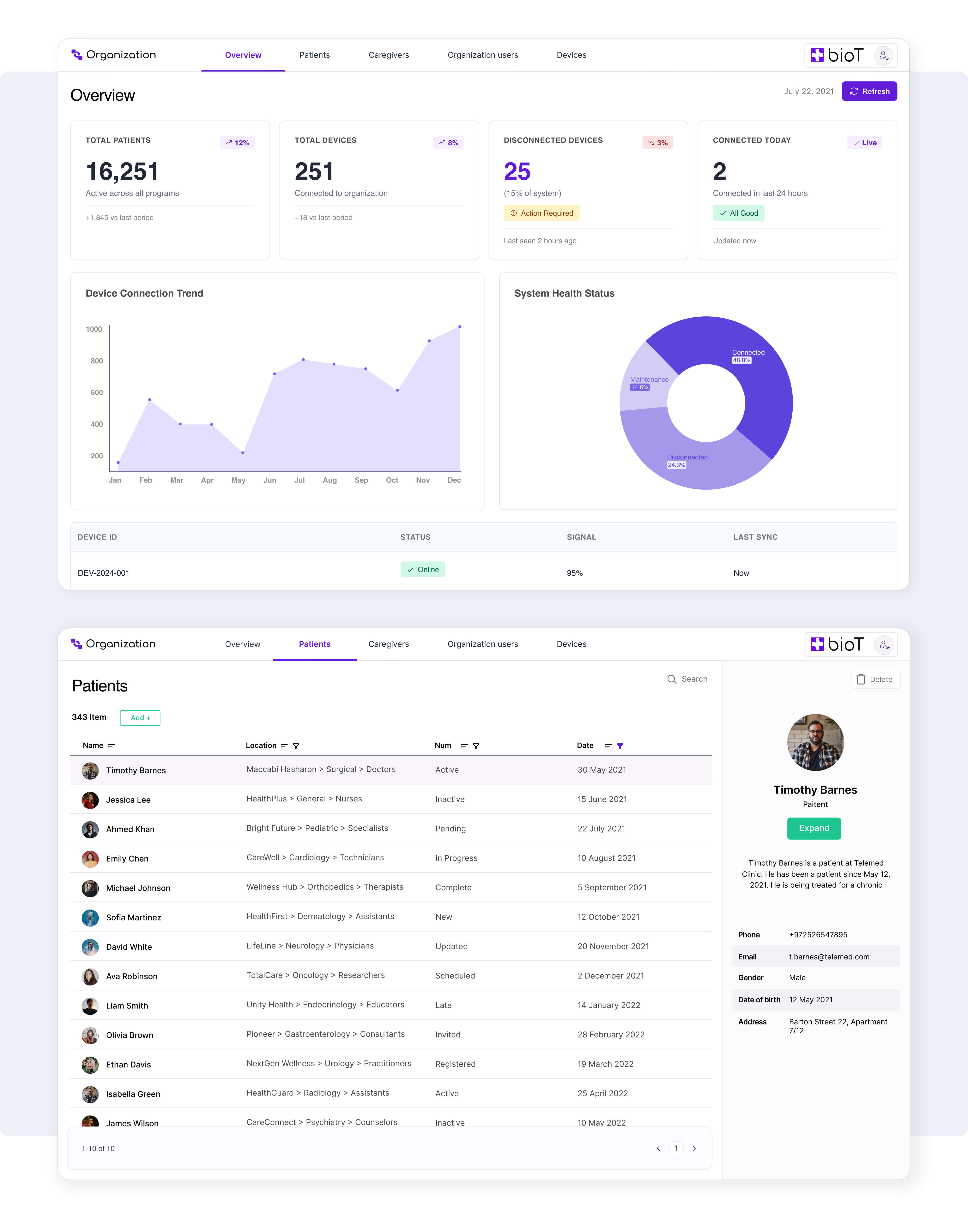 BioT handles medical device connectivity, patient engagement and data behavior analysis. It also enables remote patient monitoring and analysis, digital patient engagement, billing, operational management and secure device connectivity, all on a single platform.